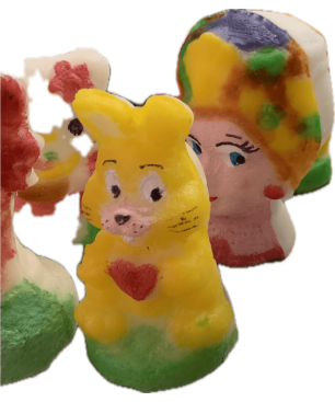 These are anthropomorphic, i.e., human-shaped sweets. hollow figurines made of hardened and painted sugar, evoking traditional figures such as Paladins of France, dancers and typical characters from the Sicilian puppet theater.