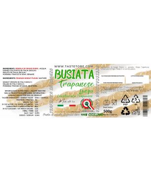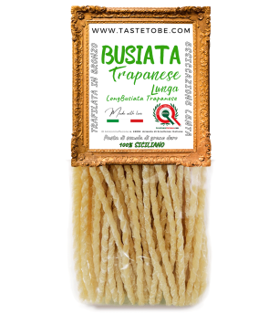 La nostra pasta secca viene prodotta con semola ottenuta da grano duro coltivato e lavorato in Sicilia e viene trafilata a bronzo. La bassa temperatura di essiccazione permette di mantenere inalterate le proprietà organolettiche del prodotto. Ingredienti: semola di grano duro siciliano, acqua. Processo di lavorazione: la semola di grano duro ottenuta viene impastata con acqua oligominerale. La successiva fase della gramolatura fa sì che l'impasto ben elastico ed omogeneo. la trafilatura al bronzo e una fase molto importante per ottenere una buona qualità del prodotto finale. una volta ottenuto l'impasto questo viene trafilato in stampi in bronzo che permettono di conferire alla pasta una superficie rugosa determinandone la forma. L'essiccazione varia a seconda dei formati e comunque avviene a basse temperature per un periodo di circa 48 ore.